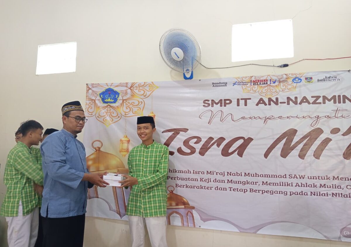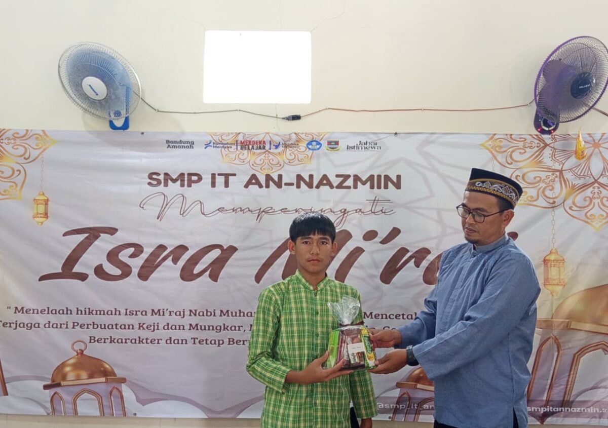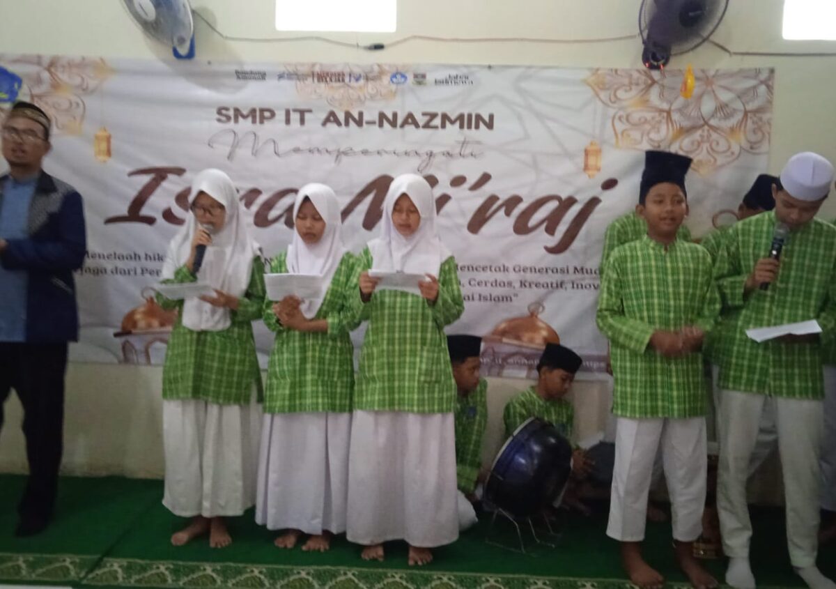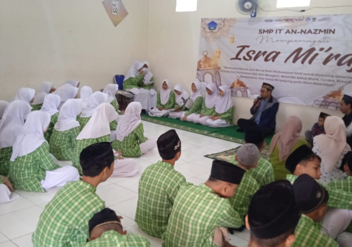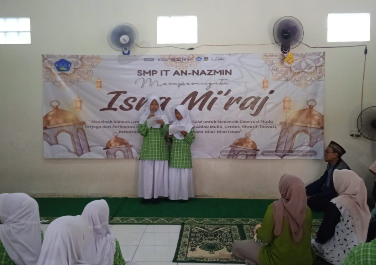Kegiatan Peringatan Isra Mi’raj Nabi Muhammad SAW yang diselenggarakan oleh SMP IT An-Nazmin pada tanggal 21 Januari 2026 sebagai upaya meningkatkan keimanan, ketakwaan, serta pembentukan karakter Islami peserta didik.